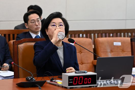 (서울=뉴스1) 국회사진기자단 = 이혜훈 기획예산처 장관 후보자가 23일 서울 여의도 국회에서 열린 인사청문회에 출석해 물을 마시고 있다. 2026.1.23/뉴스1 Copyright ⓒ 뉴스1. All rights reserved. 무단 전재 및 재배포, AI학습 이용 금지.