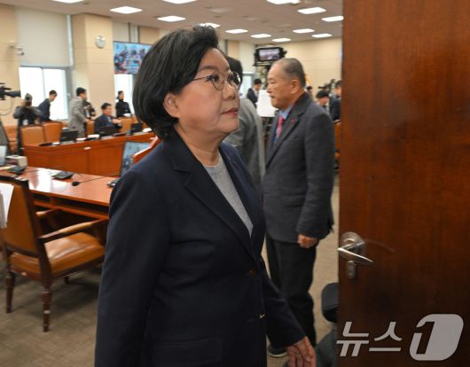 (서울=뉴스1) 이승배 기자 = 이혜훈 기획예산처 장관 후보자가 23일 서울 여의도 국회에서 열린 제431회국회(임시회) 재정경제기획위원회 인사청문회에서 정회가 선포되자 이석하고 있다. 2026.1.23/뉴스1photolee@news1.krCopyright ⓒ 뉴스1. All rights reserved. 무단 전재 및 재배포, AI학습 이용 금지.