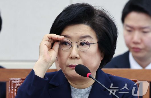 (서울=뉴스1) 국회사진기자단 = 이혜훈 기획예산처 장관 후보자가 23일 서울 여의도 국회에서 열린 인사청문회에 출석해 안경을 고쳐 쓰고 있다. 2026.1.23/뉴스1 Copyright ⓒ 뉴스1. All rights reserved. 무단 전재 및 재배포, AI학습 이용 금지.