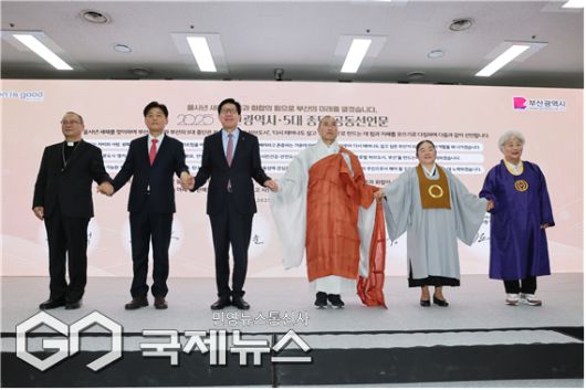 박 시장과 5대 종단 대표자들은 부산 발전과 사회적 연대를 다짐하는 공동선언문을 채택했다.