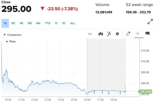 GE에어로스페이스는 전 거래일 대비 7.38% 하락한 295달러에 마감했다. 4분기 호실적을 달성했지만, 주가를 올리기에는 충분하지 않았다.