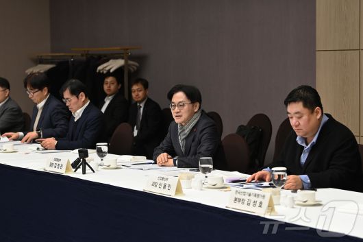 (서울=뉴스1) = 김정관 산업통상부 장관이 23일 롯데호텔 울산에서 열린 'M.AX 확산을 위한 울산 지역 AX 간담회'를 주재하고 있다. (산업통상부 제공. 재판매 및 DB 금지) 2026.1.23/뉴스1