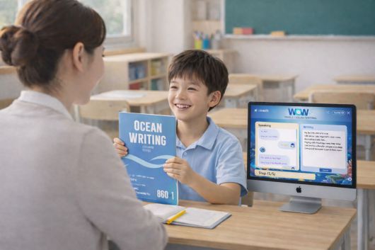 오션 라이팅은 수행평가 대비 라이팅 교재를 기반으로 학생이 직접 글을 작성한 뒤 AI가 첨삭·평가를 진행하고 작성한 ‘내 글’을 바탕으로 AI와의 대화(말하기)까지 확장하는 라이팅 특화 프로그램이다.
