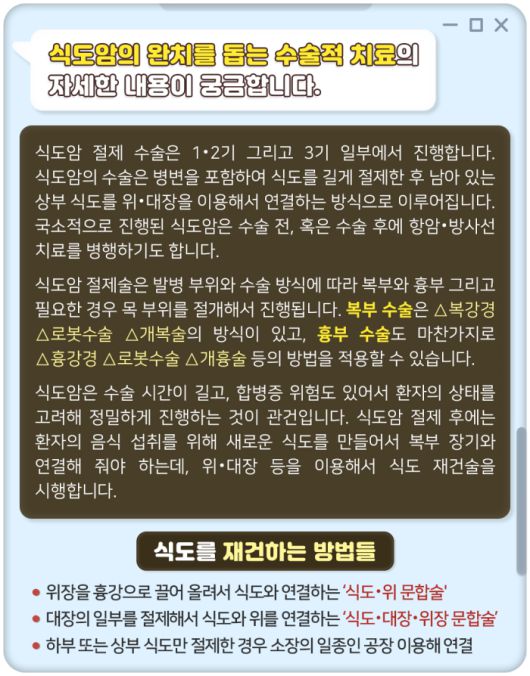 Q. 식도암의 완치를 돕는 수술적 치료의 자세한 내용이 궁금합니다.