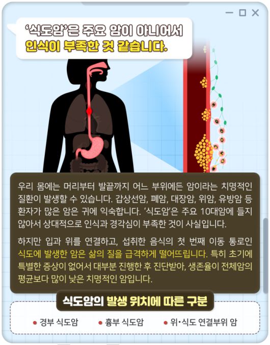 Q. '식도암’은 주요 암이 아니어서 인식이 부족한 것 같습니다.