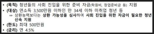 이와 함께 금리 4.5% 수준의 '미소금융 청년 대출상품'도 신설해 청년의 사회 진출을 뒷받침한다.
