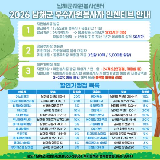 우수자원봉사자 인센티브 안내문[사진=남해군] 2026.01.23 |