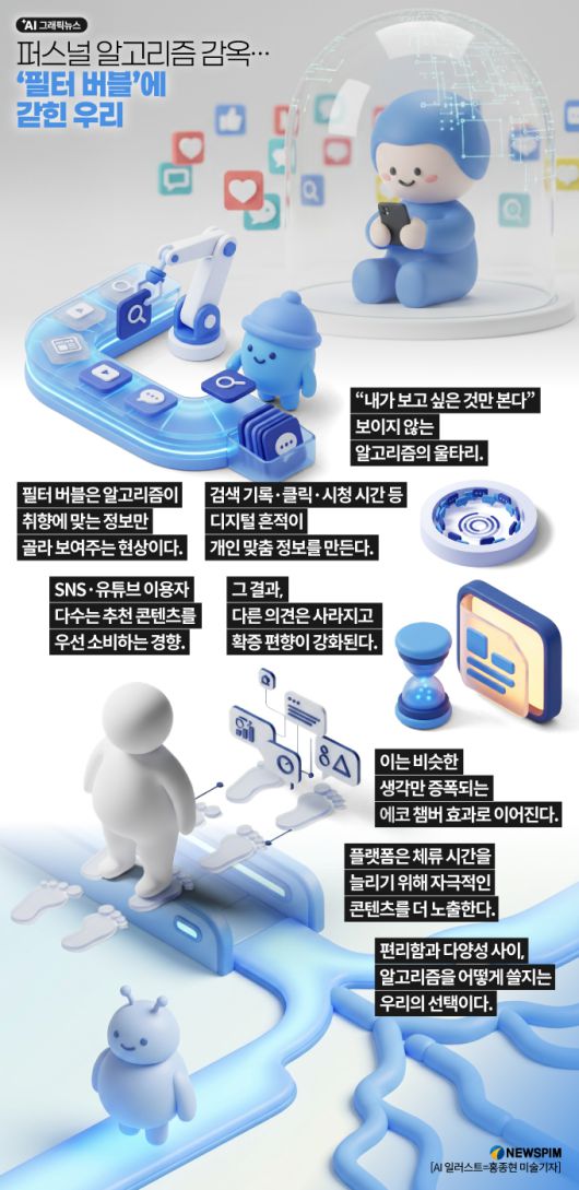 [AI그래픽뉴스] 퍼스널 알고리즘 감옥… '필터 버블'에 갇힌 우리