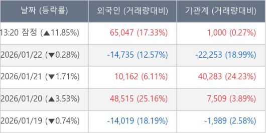 ※ 사모펀드 등 일부 기관의 순매매량은 표시되지 않음
