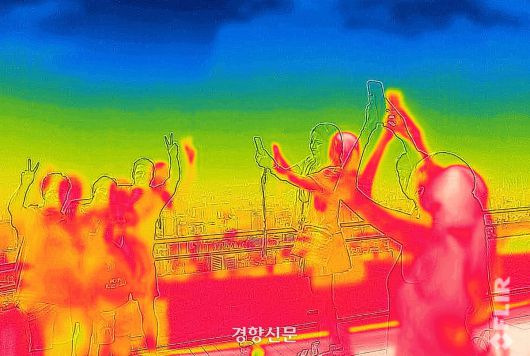 절기상 ‘소서’ 이자 서울 전 자치구에 올 여름 첫 폭염경보가 발효된 지난해 7월7일 서울 중구 남산에서 열화상 카메라로 바라본 도심이 열기로 인해 붉게 표시돼 있다. 열화상카메라는 높은 온도를 붉은 색으로, 낮은 온도를 푸른색으로 표시한다. 성동훈 기자 |