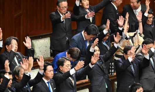 23일 일본 중의원 해산이 발표되자 일부 의원들은 “만세”를 외치고 있다. AFP 연합뉴스 |