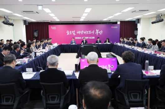 부산시는 지난해 말인 12월 29, 30일 양일간 박형준 시장 주재로 이같은 내용이 담긴 ‘2026년 시정 업무보고회’을 열었다. 시는 ▷미래신산업·혁신성장 ▷도시안전·시민행복 ▷미래혁신 거점 ▷친환경·도시활력 등 네 분야로 나눠 업무보고회를 진행하고, 분야별 역점시책과 현안사업을 집중적으로 점검했다.