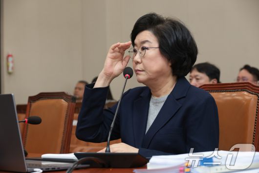 (서울=뉴스1) 국회사진기자단 = 이혜훈 기획예산처 장관 후보자가 23일 서울 여의도 국회에서 열린 인사청문회에 출석해 안경을 고쳐 쓰고 있다. 2026.1.23/뉴스1 Copyright ⓒ 뉴스1. All rights reserved. 무단 전재 및 재배포, AI학습 이용 금지.