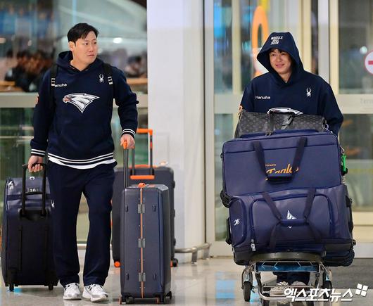 (엑스포츠뉴스 인천공항, 김한준 기자) 2026시즌 스프링캠프 훈련에 나서는 한화 이글스 선수단이 23일 오전 인천국제공항을 통해 호주 멜버른으로 출국했다. 출국장으로 향하는 한화 하주석 노시환.김한준 기자 kowel@xportsnews.com