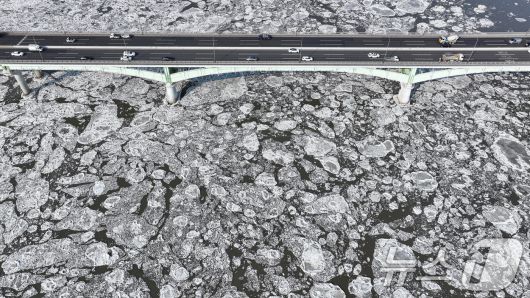 (김포=뉴스1) 김도우 기자 = 연일 한파가 이어지고 있는 23일 경기 김포시 일산대교 일대 한강 위에 유빙이 떠다니고 있다. 2026.1.23/뉴스1