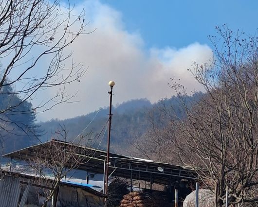 23일 낮 12시 29분쯤 경북 봉화군 재산면의 한 야산에서 산불이 발생해 당국이 진화 작업을 벌이고 있다.