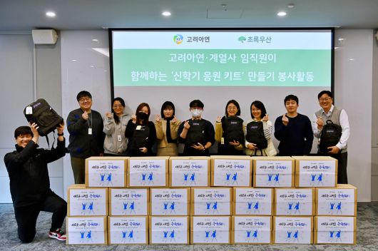 지난 20일 서울 종로구 고려아연 본사 다목적실에서 실시한 ‘고려아연·계열사 임직원이 함께하는 신학기 응원키트 만들기 봉사활동’에는 고려아연과 계열사 서린정보기술·케이지트레이딩·한국전구체(KPC) 임직원 10여 명이 참여한 가운데, 아이들에게 전달할 엽서를 작성하고 각종 선물이 담긴 신학기 키트를 제작했다.