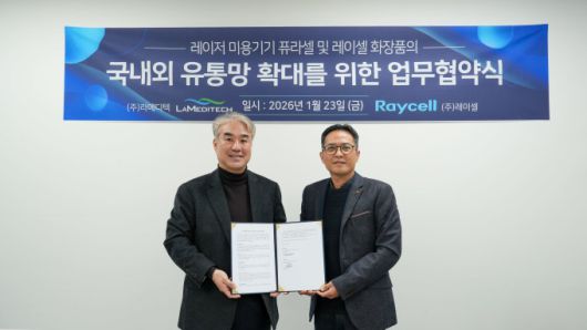 양사는 라메디텍의 레이저 미용기기 '퓨라셀'과 레이셀의 화장품을 중심으로 한 국내외 유통·판매 협력에 관한 업무협약을 체결했다. 이를 통해 단일 제품 판매를 넘어, 기기와 화장품을 연계한 토탈 에스테틱 솔루션 사업 모델을 공동으로 구축할 계획이다.