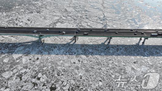 (김포=뉴스1) 김도우 기자 = 연일 한파가 이어지고 있는 23일 경기 김포시 일산대교 일대 한강 위에 유빙이 떠다니고 있다. 2026.1.23/뉴스1
