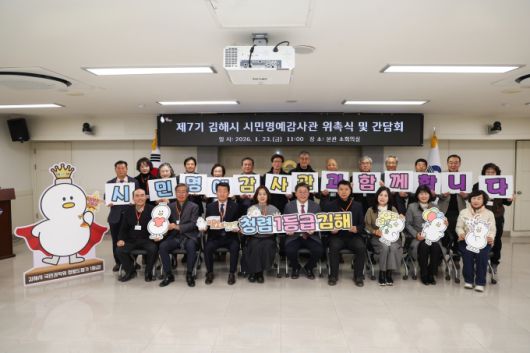 23일 오전 11시 경남 김해시청 소회의실에서 열린 제7기 김해시 시민명예감사관 위촉식에 참석자들이 기념사진을 찍고 있다.[사진=김해시] 2026.01.23 |
