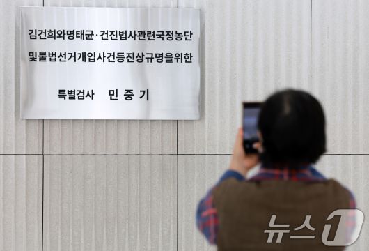 (서울=뉴스1) 이호윤 기자 = 고위공직자범죄수사처(공수처)가 통일교 수사 무마 의혹을 받는 민중기 특별검사팀에 대해 압수수색에 나선 23일 서울 종로구 광화문 KT빌딩에 민중기 특별검사팀의 현판이 걸려 있다. 2026.1.23/뉴스1