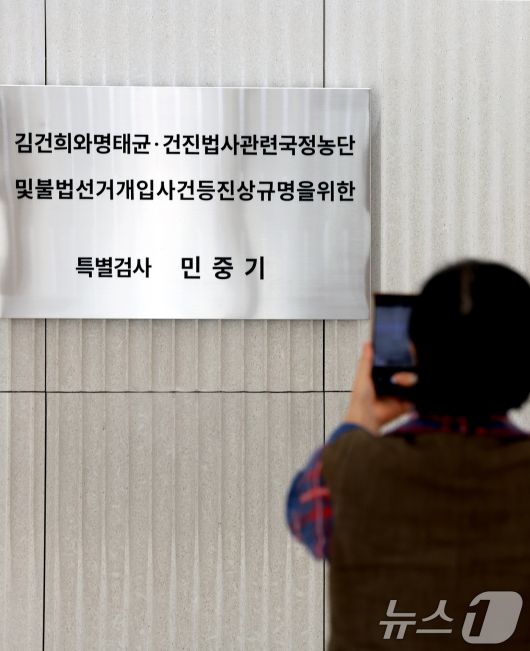 (서울=뉴스1) 이호윤 기자 = 고위공직자범죄수사처(공수처)가 통일교 수사 무마 의혹을 받는 민중기 특별검사팀에 대해 압수수색에 나선 23일 서울 종로구 광화문 KT빌딩에 민중기 특별검사팀의 현판이 걸려 있다. 2026.1.23/뉴스1
