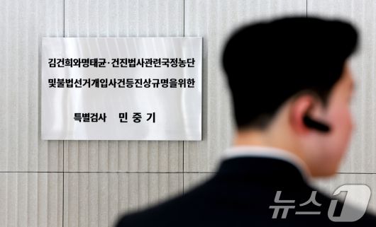 (서울=뉴스1) 이호윤 기자 = 고위공직자범죄수사처(공수처)가 통일교 수사 무마 의혹을 받는 민중기 특별검사팀에 대해 압수수색에 나선 23일 서울 종로구 광화문 KT빌딩에 민중기 특별검사팀의 현판이 걸려 있다. 2026.1.23/뉴스1