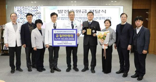 정 신 전남대학교병원장은 “대를 이어 전해지는 성인학원 가족의 고귀한 나눔은 전남대병원 모든 구성원에게 큰 감동과 자부심을 준다”며 “기탁하신 소중한 후원금은 지역민에게 최상의 의료 서비스를 제공하고 미래 의료를 선도하는 병원으로 도약하는 데 귀중하게 사용하겠다”고 말했다.