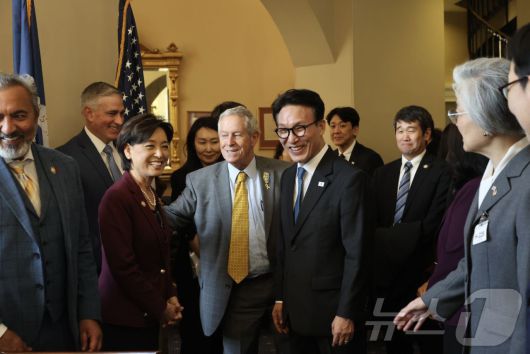 김민석 국무총리가 22일(현지시간) 미국 국회의사당에서 열린 미 하원 주요인사 초청 오찬 간담회에 참석해 참석자들과 인사하고 있다. (총리실 제공. 재판매 및 DB 금지) 2026.1.23/뉴스1 |