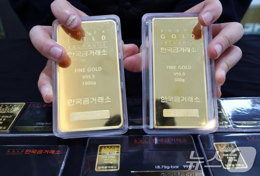 (서울=뉴스1) 최지환 기자 = 국제 금값이 사상 처음으로 온스당 4천900달러를 돌파한 23일 서울 종로구 한국금거래소에서 직원이 골드바를 정리하고 있다. 2026.1.23/뉴스1