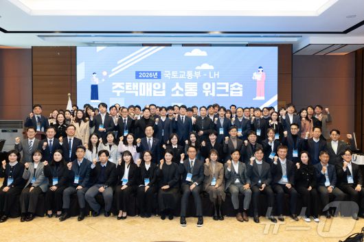 (서울=뉴스1) = 김윤덕 국토교통부 장관이 23일 오전 대전 ICC 컨벤션홀에서 열린 ‘주거사다리의 주역 : 매입임대 소통 워크숍’에서 참석자들과 기념촬영을 하고 있다. (국토교통부 제공. 재판매 및 DB 금지) 2026.1.23/뉴스1urodoct2@news1.krCopyright ⓒ 뉴스1. All rights reserved. 무단 전재 및 재배포, AI학습 이용 금지.