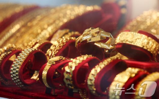 (서울=뉴스1) 최지환 기자 = 국제 금값이 사상 처음으로 온스당 4천900달러를 돌파한 23일 서울 종로구 한 금은방에 금 제품이 진열되어 있다. 2026.1.23/뉴스1choipix@news1.krCopyright ⓒ 뉴스1. All rights reserved. 무단 전재 및 재배포, AI학습 이용 금지.