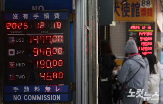 원·달러 환율이 고공행진을 이어가고 있는 가운데 18일 서울 명동 거리의 한 환전소에 환율이 표시되어 있다. 전날(17일) 원·달러 환율이 장중 1480원을 넘어서면서 8개월 만에 최고치를 기록했다. 류영주 기자 |