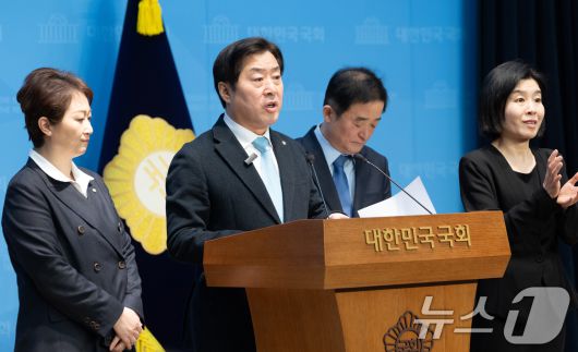 (서울=뉴스1) 이승배 기자 = 이언주, 황명선, 강득구 더불어민주당 최고위원이 23일 서울 여의도 국회 소통관에서 정청래 대표의 조국혁신당과의 합당 제안과 관련해 규탄 및 사과를 촉구하는 기자회견을 하고 있다. 2026.1.23/뉴스1