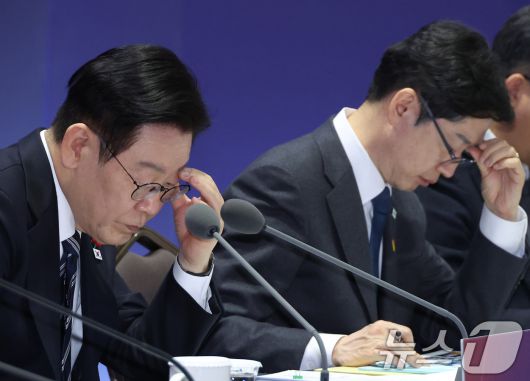 (울산=뉴스1) 허경 기자 = 이재명 대통령이 23일 울산전시컨벤션센터에서 열린 '울산의 마음을 듣다‘ 타운홀 미팅에서 자료를 살펴보고 있다. 2026.1.23/뉴스1seiyu@news1.krCopyright ⓒ 뉴스1. All rights reserved. 무단 전재 및 재배포, AI학습 이용 금지.