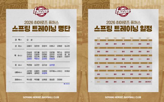 키움은 23일 "오는 25일부터 3월 7일까지 총 42일간 고양 국가대표 야구훈련장과 창녕 스포츠파크에서 2026시즌 스프링캠프를 실시한다"고 밝혔다.