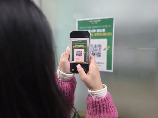 한 청년이 면접사진 서비스를 이용하고 만족도 조사를 진행하기 위한 모습 사진=나주시 |