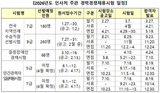 (더쎈뉴스 / The CEN News 김영욱 기자) 인사혁신처가 2026년도 국가공무원 경력경쟁채용시험의 전반적인 일정과 선발 계획을 23일 공개했다.