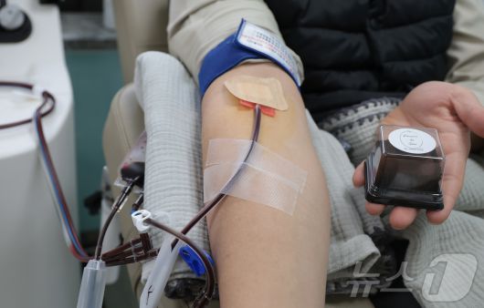 (서울=뉴스1) 권현진 기자 = 23일 오후 서울 노원구 대한접십자사 서울동부혈액원에서 한 시민이 헌혈을 하고 있다. 이날 서울동부혈액원은 시민들의 헌혈 참여를 독려하기 위해 최근 품귀 현상이 빚어진 '두바이 쫀득 쿠키(두쫀쿠)' 이벤트를 진행했다. 전혈·혈소판 헌혈자들은 선착순으로 두쫀쿠를 받을 수 있다. 2026.1.23/뉴스1
