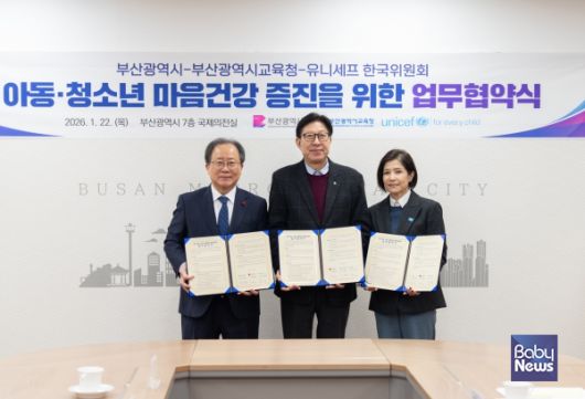 유니세프 한국위원회(회장 정갑영)는 아동·청소년의 마음건강 증진을 위해 부산광역시(시장 박형준) 및 부산광역시교육청(교육감 김석준)과 업무협약을 체결했다고 22일 밝혔다.