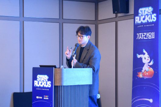 민정상 이모티브 대표가 스타러커스 임상결과를 발표하고 있다./사진제공=이모티브 |