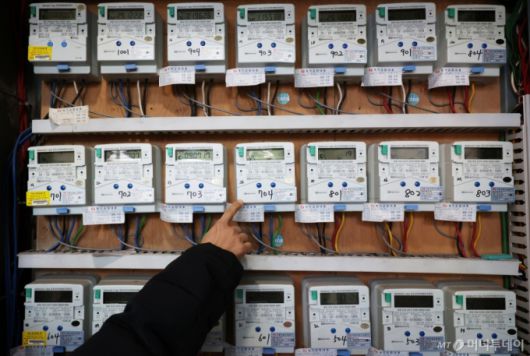서울의 한 오피스텔 건물에서 관계자가 전기 계량기를 살펴보고 있다. /사진=뉴스1 /사진=(서울=뉴스1) 장수영 기자 |