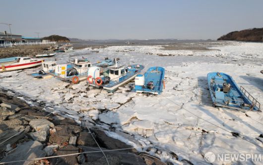 동장군 기세에 갇힌 어선들