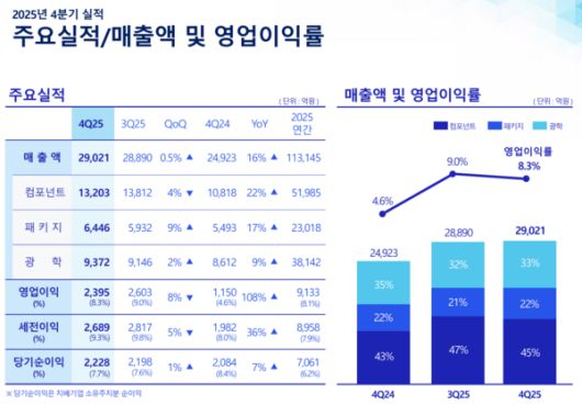 또 "AI 및 전장 관련 고부가 제품 라인업을 강화하고 유리(글라스) 기판과 휴머노이드 로봇용 부품 등 중장기 성장 기반을 구축할 계획"이라고 덧붙였다.