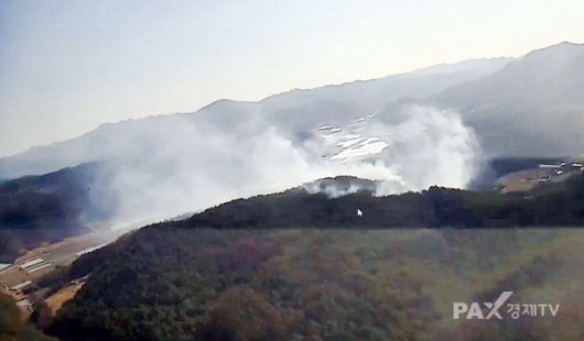 [사진제공=산림청][대전=팍스경제TV] 경북 봉화에서 발생한 산불이 헬기와 진화인력을 대거 투입한 산림당국의 총력 대응으로 조기에 진화되며 큰 피해를 막았습니다.