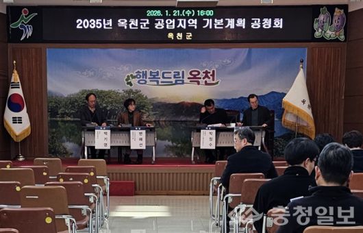 충북 옥천군이 지난 21일 옥천군청 대회의실에서 '2035 옥천군 공업지역기본계획(안)'에 대한 주민공청회를 열고 공업지역의 체계적 관리와 활성화 방안을 논의했다.