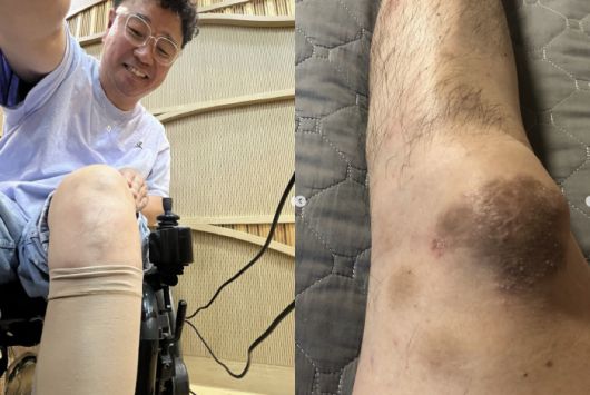 김송은 22일 "하반신마비 25년차 다리에 상처가 나도 감각이 없어서 발톱이 빠져도 통증을 못 느껴요. 그래도 괜찮아요~ 소독해주고 호~해주는 마음의 여유, 연륜이 생겼나 봐요"라고 강원래를 향한 애정을 드러냈다.