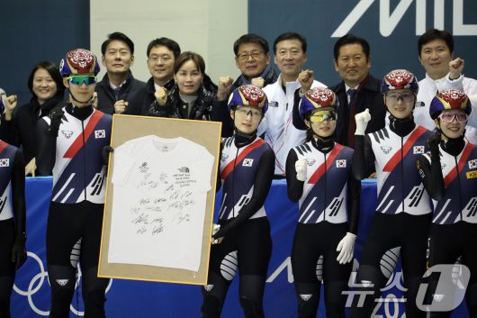 (진천=뉴스1) 김용빈 기자 = 정청래 더불어민주당 대표가 23일 충북 진천국가대표선수촌 빙상장에서 쇼트트랙 선수들과 기념촬영 하고 있다. 2026.1.23/뉴스1vin06@news1.krCopyright ⓒ 뉴스1. All rights reserved. 무단 전재 및 재배포, AI학습 이용 금지.