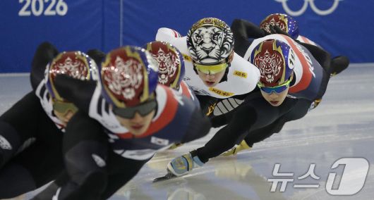 (진천=뉴스1) 김용빈 기자 = 쇼트트랙 국가대표 선수들이 동계올림픽 개막 14일 전인 23일 충북 진천국가대표선수촌 빙상장에서 훈련하고 있다. 2026.1.23/뉴스1