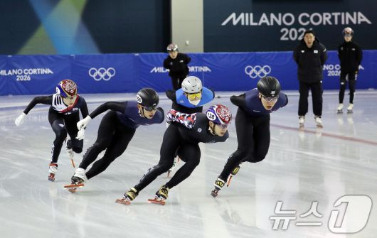 (진천=뉴스1) 김용빈 기자 = 쇼트트랙 국가대표 선수들이 동계올림픽 개막 14일 전인 23일 충북 진천국가대표선수촌 빙상장에서 훈련하고 있다. 2026.1.23/뉴스1vin06@news1.krCopyright ⓒ 뉴스1. All rights reserved. 무단 전재 및 재배포, AI학습 이용 금지.